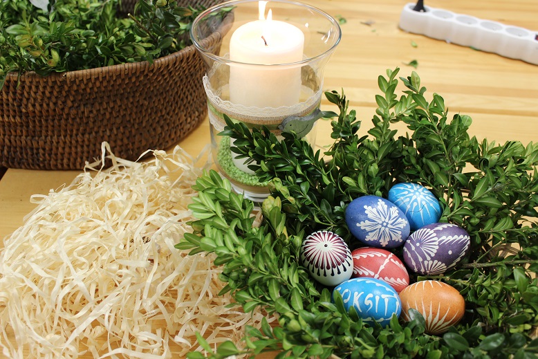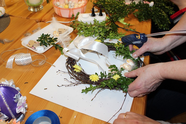 GOKSiT w Polańczyku corocznie zaprasza wszystkich chętnych na warsztaty wielkanocne. W tym roku warsztaty odbyły się 11 kwietnia w Regionalnym Centrum Kultury w Myczkowie. Uczestnicy warsztatów, dzięki Gabrysi Matuszewskiej (bardzo dziękujemy), mogli zobaczyć jak pięknie można zdobić jaka za pomocą wosku, a także mieli możliwość spróbować swoich sił w tej tradycyjnej sztuce. Każdy też mógł wykonać swoją własną ozdobę wielkanocną. Z bukszpanowych i wiklinowych gałązek, kwiatów, piórek, wstążek, a także drewnianych kurek, zajączków i baranków powstawały piękne wianki, które ozdobią nasze domy w Święta Wielkiej Nocy.